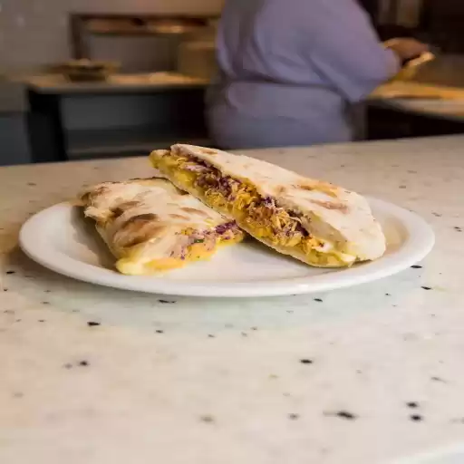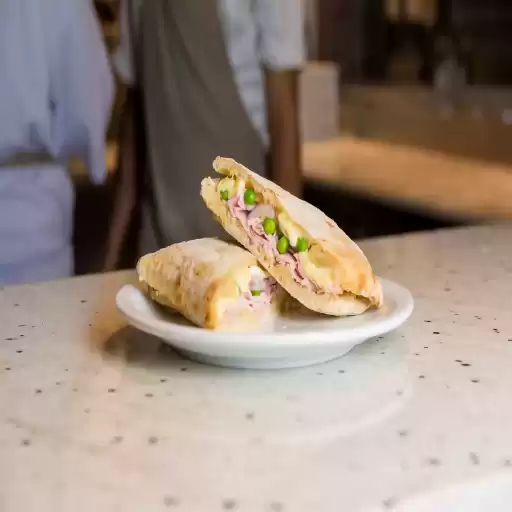 Sanduiche de frango, catupiry, muçarela, tapenade de azeitona preta.